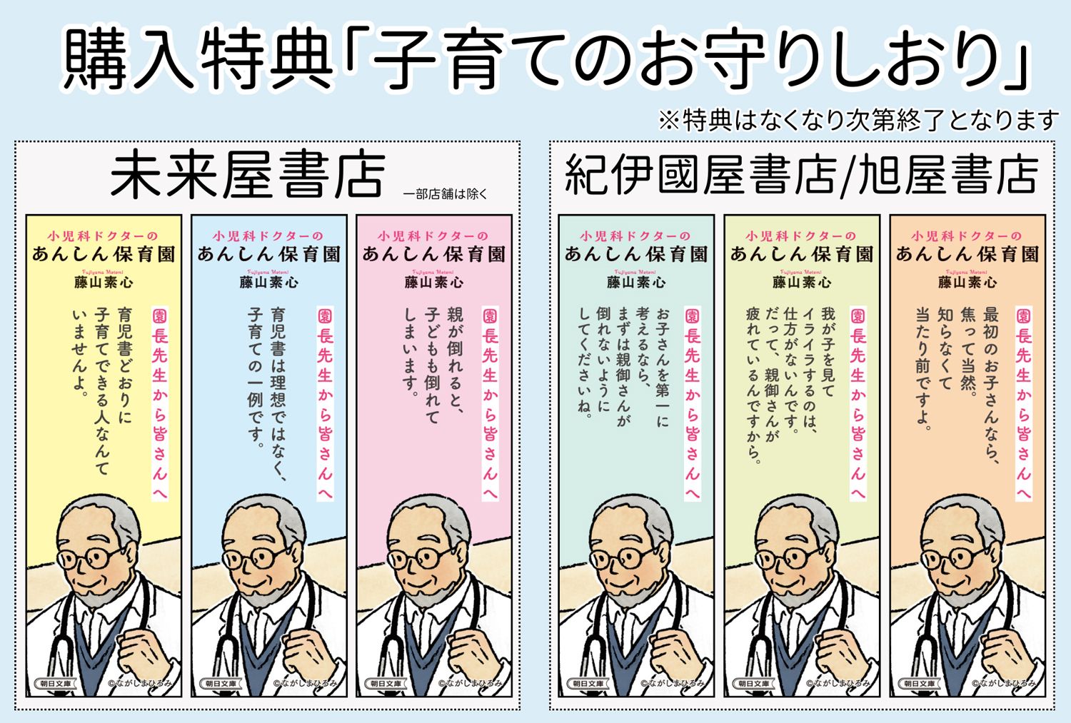 発売を記念して、紀伊國屋書店・未来屋書店 各店舗にて、購入特典「子育てのお守りしおり」をご用意いたしました。